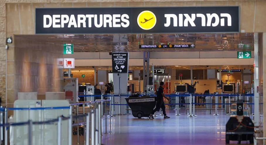 △以色列北部本古里安国际机场的候机大厅空无一人